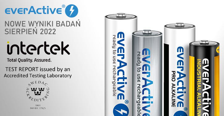 - Akumulatorki Ni-MH everActive Professional Line w akredytowanym laboratorium INTERTEK.